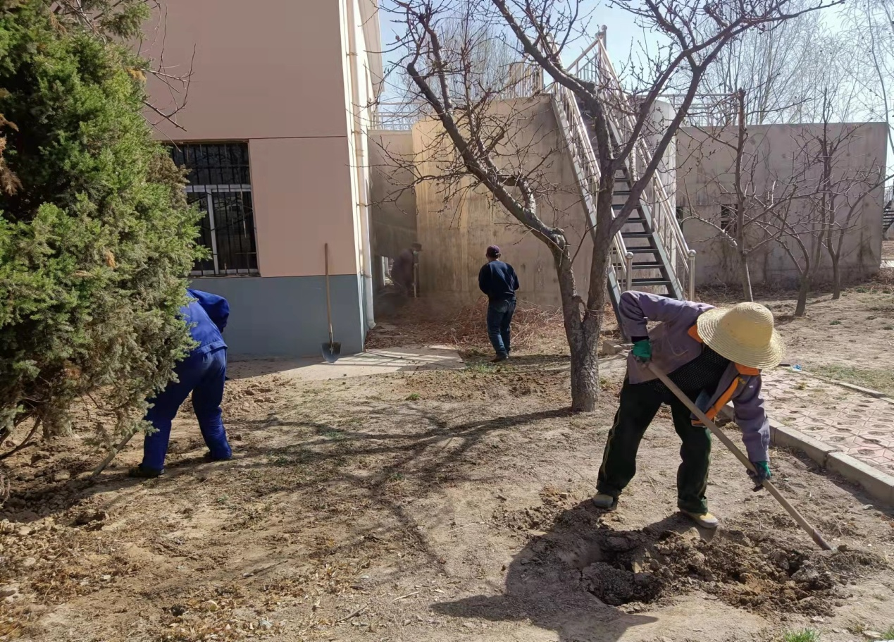 ?3月份公司工程部人員組織有序的開始綠化工程施工,如清理綠化地干枯葉,修整綠化地及給各樹木噴藥等一系列工作。